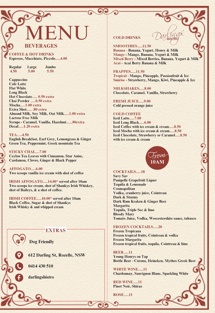 - All Day Menu: From hearty Brekky Wraps to the indulgent Darlings Big Breakfast, the food here is a symphony of fresh and tasty ingredients.